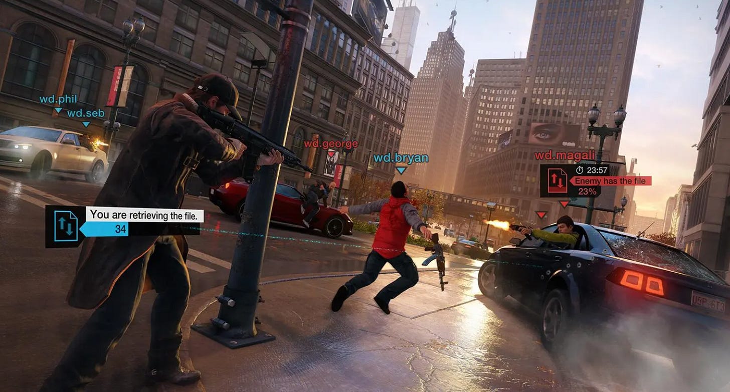 Watch Dogs (2014): Una saga que se sumerge en el mundo del hacktivismo y la vigilancia digital, retratando un futuro cercano hiperconectado. Sus secuelas, Watch Dogs 2 (2016) y Watch Dogs: Legion (2020), amplían el universo explorando temas como la resistencia contra corporaciones y el control masivo a través de la tecnología.