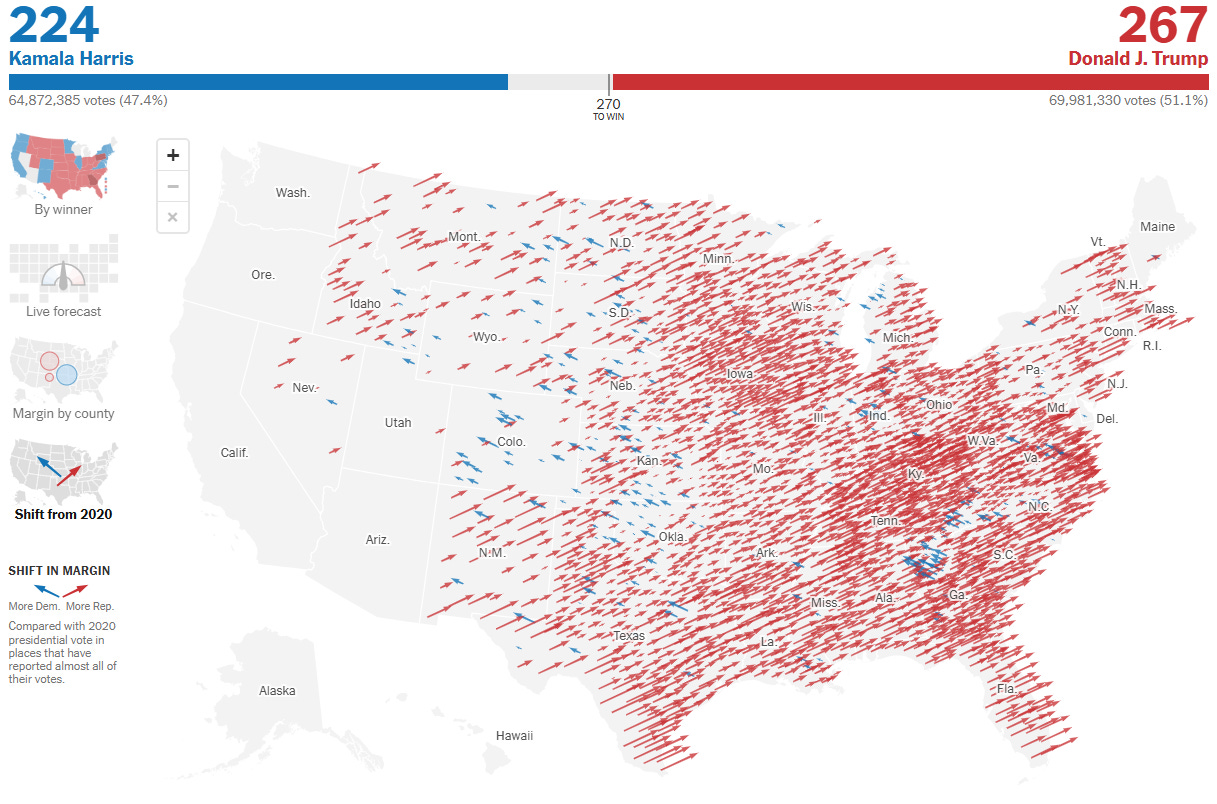 Ambos factores se juntan a una falta de movilización masiva del voto femenino en torno a Kamala Harris que sirviese como revulsivo electoral. A lo que se añade a una desmovilización generalizada de los demócratas que pierden en voto popular por primera vez en veinte años.